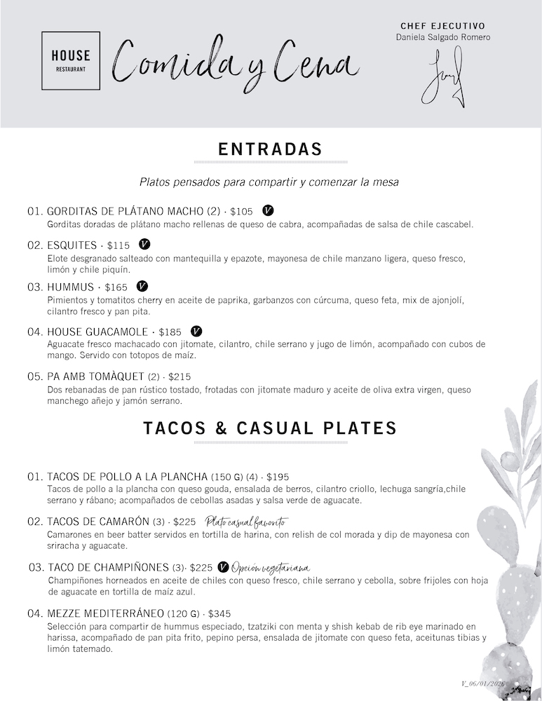 Cena en HOUSE: un jardín escondido en el Centro Histórico de Cuernavaca para cenar bien, sin prisa. Cocina mexicana y mediterránea, mixología bien pensada y un ambiente íntimo para disfrutar con amigos, familia o una cena en pareja.