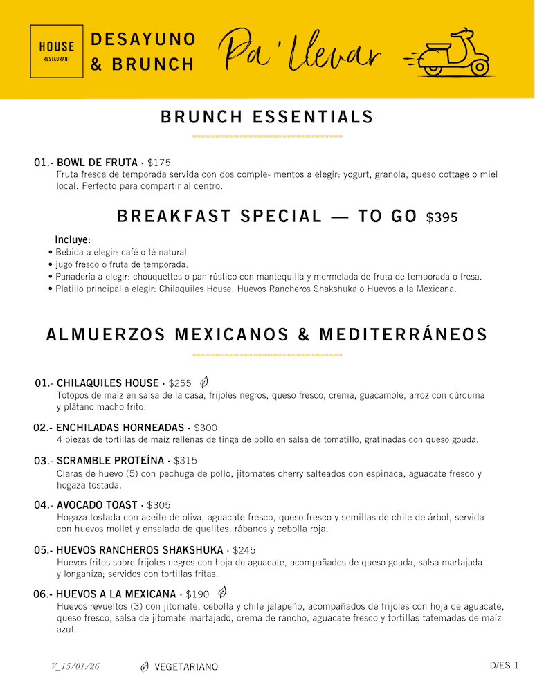 Delivery y pick-up con el sabor de HOUSE: cocina mexicana–mediterránea, porciones generosas y listo para disfrutar.